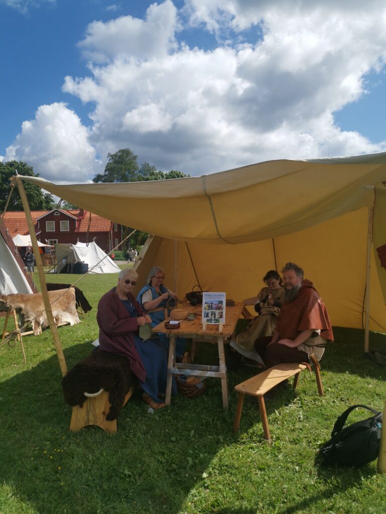 Det är Gamla Uppsala museum som arrangerar historisk festival på området intill de gamla vikingahögarna. Stora tält har ställts upp och överallt på området vandrar “vikingar” omkring i tidstypiska kläder. Precis som på vikingatidens marknader används tälten både som stånd för försäljning och som sovplats för de som arbetar på marknaden. Några av vikingarna har redan hunnit sova en natt i sina tält.