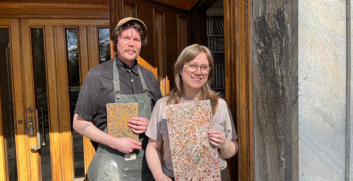 SamhälleBokbinderi och pappersmarmorering i hjärtat av Uppsala I studion på Kyrkogårdsgatan 11 håller Hannah och Calle till. Där binder de böcker, marmorerar och håller workshops.